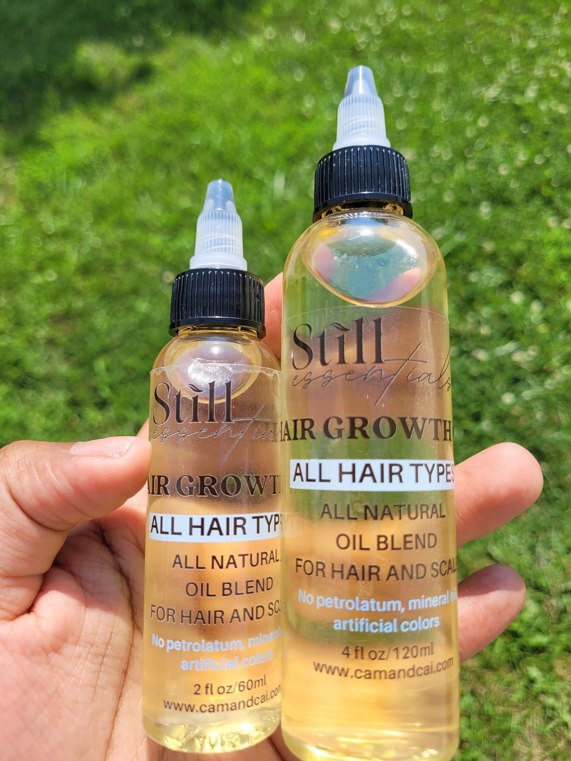 Let's talk about this amazing hair oil. We have combined the wonders of natural oils such as Castor oil, Lavender, Peppermint, Rosemary and Tea Tree to produce our Hair Growth oil – an antioxidant rich Hair growth solution that will increase blood circulation to your scalp, remove product residue, aid in scalp dandruff treatment and assist in growing hair. We also include Vitamin E, which repairs damage to your hair follicles in order to stimulate natural hair growth. Simply massage a small amount into your scalp 3 to 4 times a week and watch your hair grow! With our 2 oz or 4 oz bottle, made in the USA.